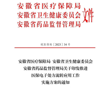 近日,安徽省医疗保障局印发《关于推进医保电子处方流转应用工作的实施方案》,提出依托国家(安徽省)医疗保障信息平台, 推动医保电子处方中心落地应用,建立定点医疗机构电子处方顺利流传到定点药店的通道。