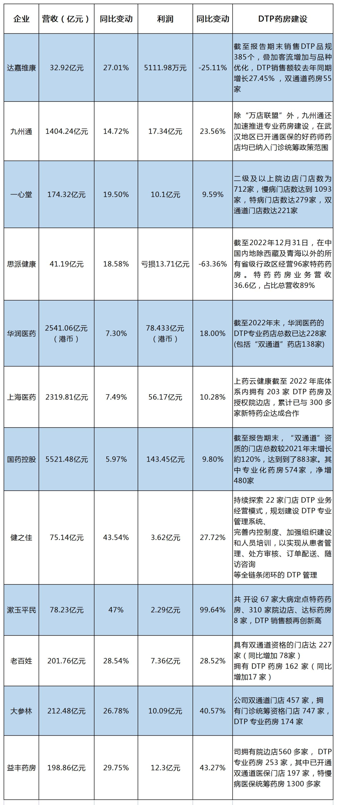 面对处方外流带来的市场机会,国内药品零售企主要通过布局“院边店+DTP+慢病管理”的模式来承接处方药外流。其中不仅活跃着老百姓、益丰、大参林、一心堂、漱玉平民、健之佳等大型连锁企业,还有上海医药、华润医药、国药控股等流通企业。