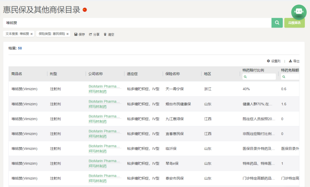 作为高值药物,唯铭赞曾出现在2021年的医保谈判预选名单中,但最终谈判失败。2022年未参与医保谈判,因此目前该药仍未纳入国家医保目录。根据GBI SOURCE全球药品数据库,截至目前唯铭赞存在于13个省的惠民保中,2021年还曾经与成都医保局达成合作(医保支付40万/年以内、个人负担6万/年以内),后来还与江苏医保局达成合作。