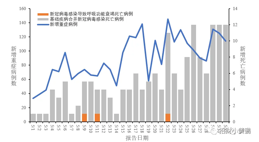 图1 全国新冠病毒感染新增重症和死亡病例报告情况