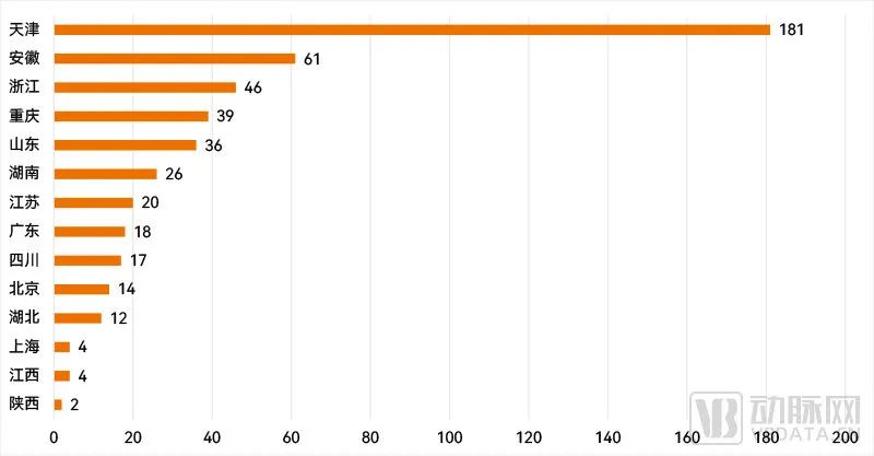 以各地近年进入二类创新医疗器械快速审批程序的产品数量来看,天津无疑独占鳌头,公示共计181款二类创新医疗器械,远远多于其他地区,甚至在总计480款二类创新医疗器械中占了接近四成之多。