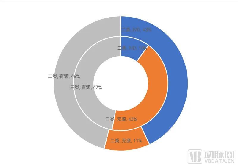 但在我们统计的二类创新医疗器械中,有源器械多达220款,占比达到46%;IVD产品则有206款之多,占比高达43%;剩下无源医疗器械54款,仅有11%的占比。