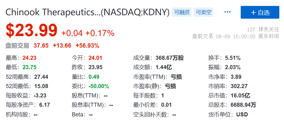 Chinook管线包括两项临床开发后期资产,用于治疗免疫球蛋白A肾病(IgAN),这是一种进行性罕见肾脏疾病,主要影响年轻人,目前缺乏有针对性的治疗选择。多达30%的患者在10年内进展为肾衰竭和肾透析。