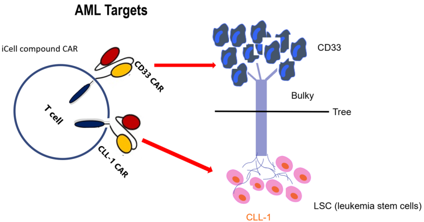CD33是一种跨膜唾液酸结合免疫球蛋白型凝集素受体,CD33在AML细胞中高表达,90%AML患者的白血病细胞表达CD33。 此外由于CD33在成熟的骨髓细胞和造血祖细胞上表达,这必须考虑预期的靶向非肿瘤毒性。此外CD33表达亚型相当复杂,这使得许多抗体难以结合,降低了疗效,目前大部分抗体临床开发都处于搁置状态。
