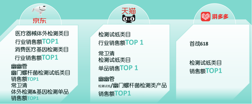 6月19日,诺辉健康公布的618全平台战报显示,其不仅蝉联京东渠道、天猫渠道所在品类销售额和行业双排名第一,更是在拼多多旗舰店的618首战中拿下检测试纸类目销售额冠军。