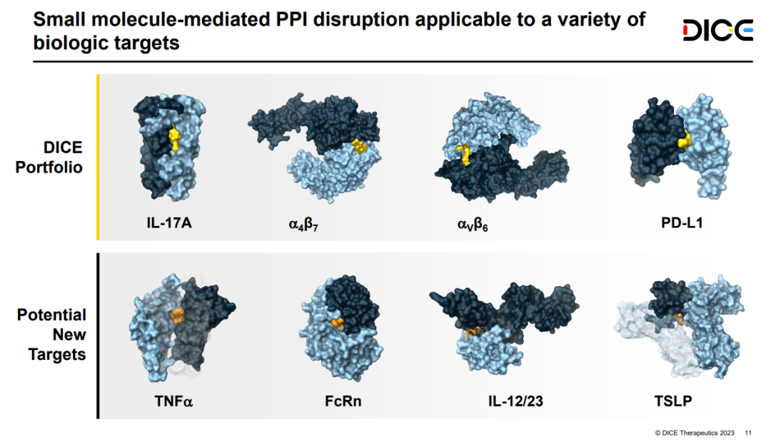 小分子分子量小、结构相较于大分子较为平面,往往难以影响蛋白-蛋白相互作用(PPI),也难比肩生物大分子药物。DICE Therapeutics 拥有的 DELSCAPE 平台旨在开发能够影响蛋白-蛋白相互作用的口服小分子药物,通过变构结合,与抗体药发挥相似效应,这也是 DELSCAPE 平台的优势。