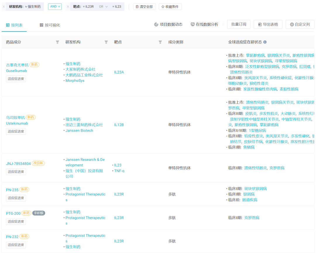 由此可见,对于需要长期服药的慢病领域,拥有一款安全性良好且疗效可以长久维持的小分子是跨国制药企业的管线策略之一,尤其是自家已有基础的深耕领域。如果已有同靶点成药的生物制剂那就更完美了,这是成熟药企的表现,围绕核心领域不断布局,强化领域地位。