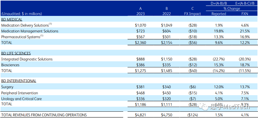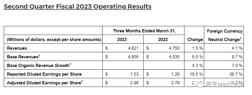 2023年5月4日,BD公布了截至2023年3月31日的2023财年第二季度业绩。公司层面总营收48亿美元,同比增长1.5%:
