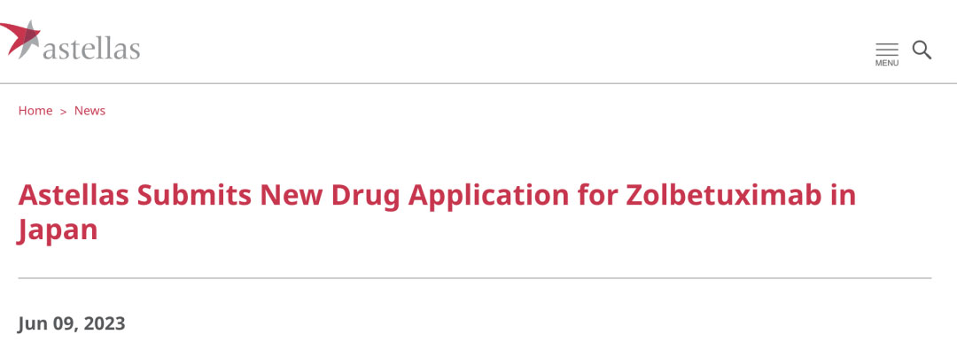 6月9日,安斯泰来宣布,Claudin18.2药物佐妥昔单抗在日本提交上市申请,适应症为局部晚期不可切除或转移性胃或胃食管交界处腺癌。