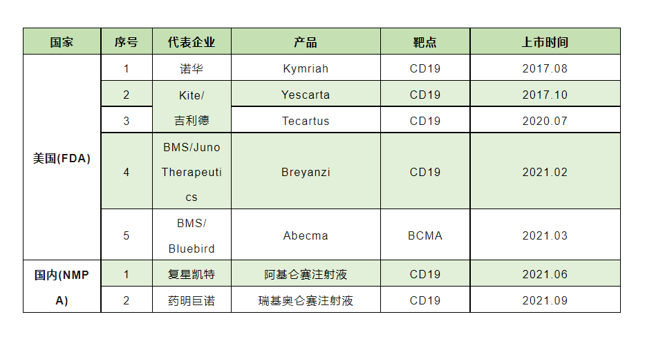 △ 目前全球已有7款CAR-T细胞治疗产品上市