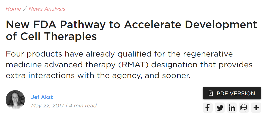 [2]New FDA Pathway to Accelerate Development of Cell Therapies