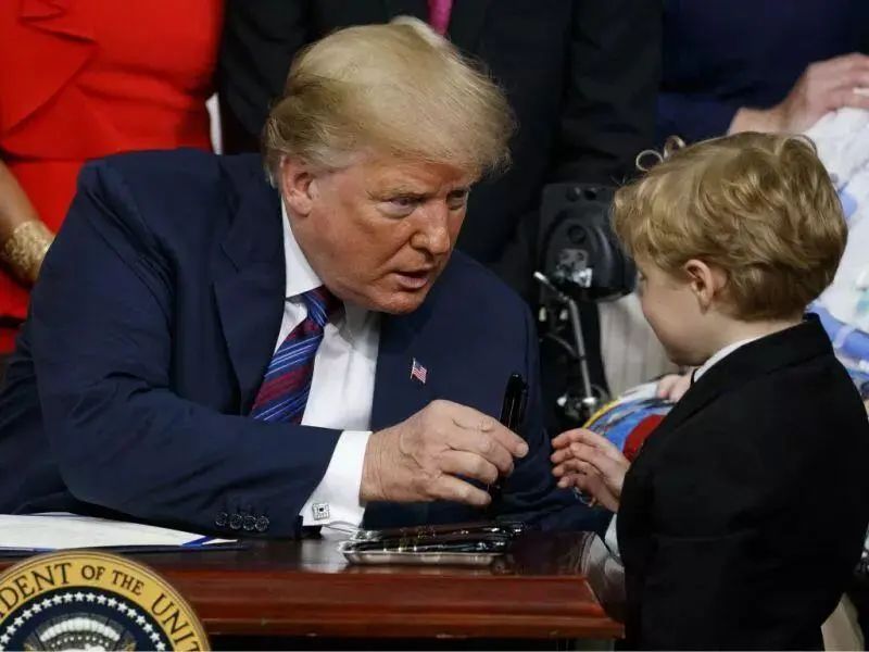 △ 特朗普按照竞选承诺签署通过了《乔丹法案》,允许身患绝症的晚期恶疾患者自担风险尝试未经药监部门审批的实验性治疗和药物,该法案的名字按画面中患有肌肉萎缩症的男孩乔丹命名