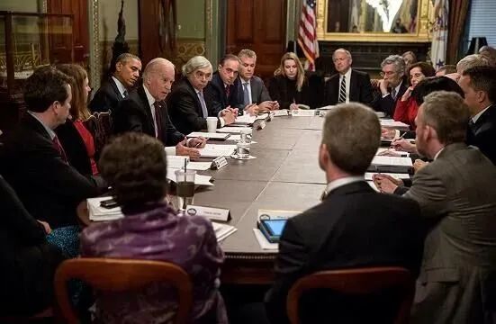 △ 2016年奥巴马和拜登启动“癌症登月计划”,利用免疫细胞治疗癌症曾受万人拥戴。图为 “癌症登月计划”特别工作组的第一次会议