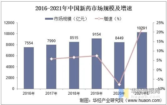 △ 2016-2020年我国新药市场规模除2020年受疫情影响之外稳定增长,2020年新药市场规模为8449亿元,2021年增长至10291亿元。