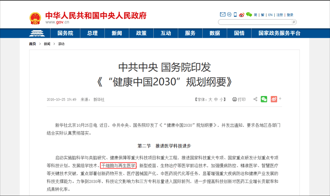 早在2016年,中共中央国务院就将细胞医学提高到了政策层面,“干细胞与再生医学”被列为国家重大科技项目写入《“健康中国2030”规划纲要》。干细胞产业甚至还被列入我国“十三五”规划、“十四五”规划的国家发展战略,这也是我国医疗科技发展的必然方向。