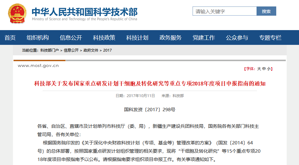 △ 科技部发布《“干细胞及转化研究”等重点专项2020年度项目申报指南的通知》,仅2020年,国拨总经费2.40亿元