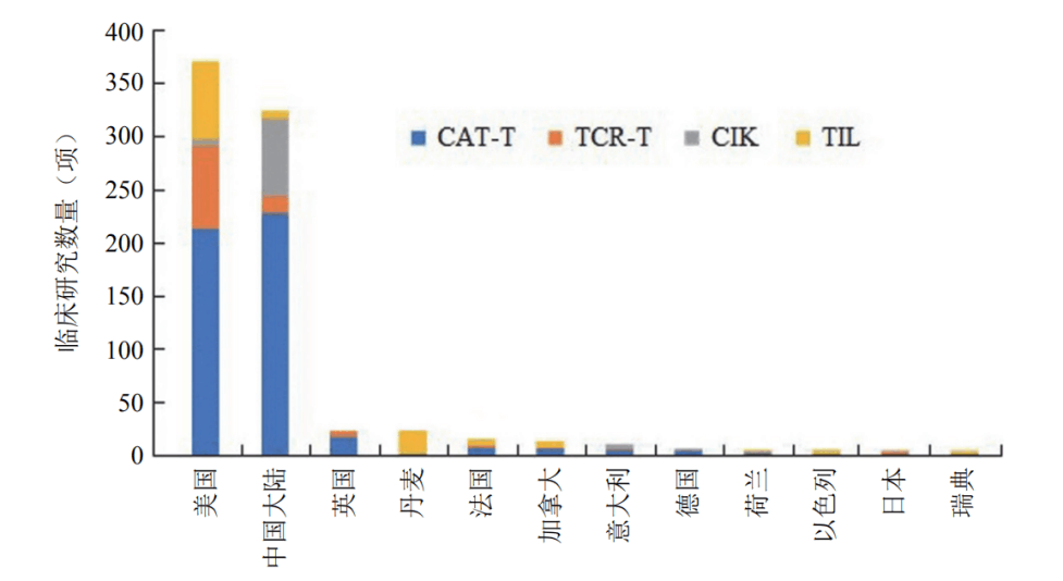 △ 以 CAR-T、TCR-T、TIL 和CIK这四种常见的免疫细胞疗法为例,美国和中国的临床研究规模远超过其他国家,而中国以接近40%的年平均增长,不容小觑。