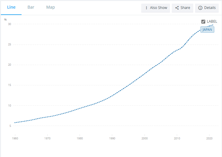 图4:世界银行官网日本65岁及以上人口变化(2000-2021年)