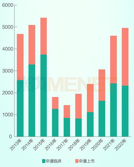 2013-2022年CDE申报IND与NDA受理号数量情况