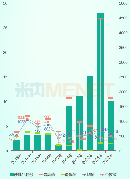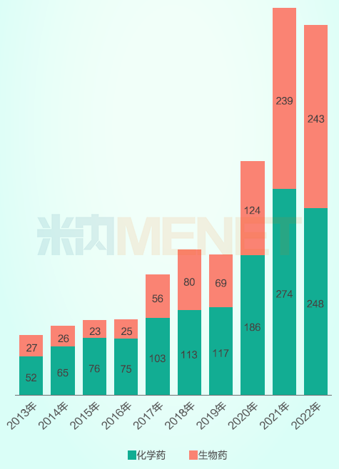 本文基于国家药监局年度报告、公开数据文章、以及米内网新药研发与药品审评相关数据库的统计数据,以2013-2022年为时间维度,将在2023米思会上以展板形式发布报告,回顾国内近十年新药研发的宏观变化,并对其发展趋势进行汇总分析,以供参考。