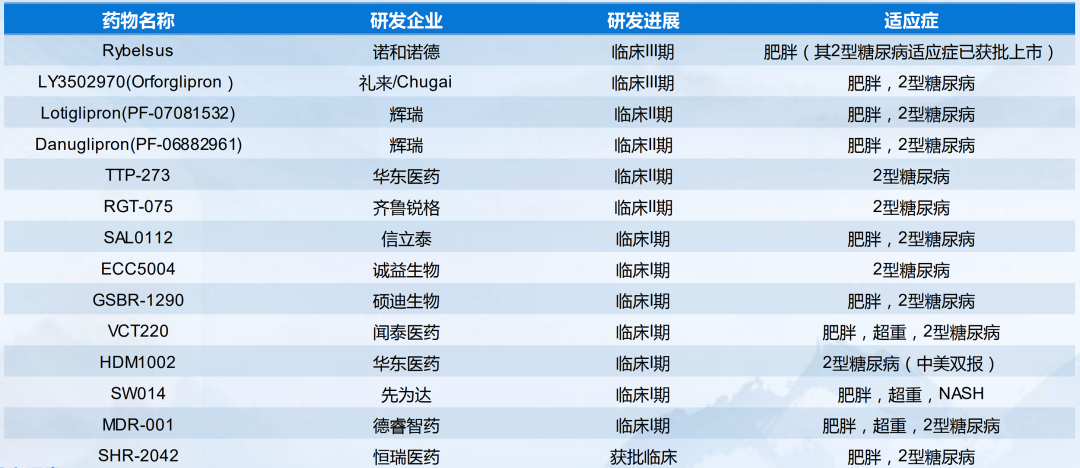 国产GLP-1RA小分子约有9家药企布局,华东医药进度最快。