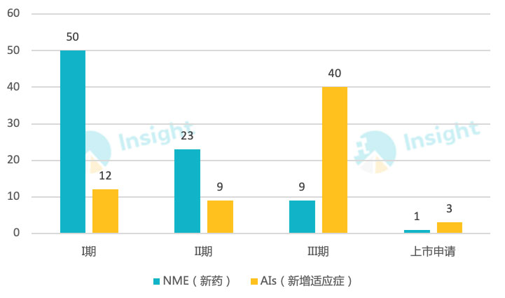 2、新药开发数量的金字塔状分布: