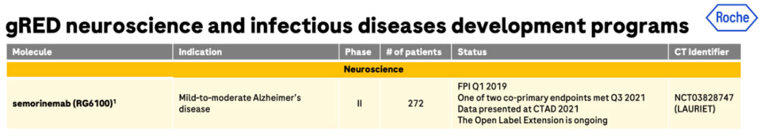 罗氏 2022 年神经领域早研究项目汇总
