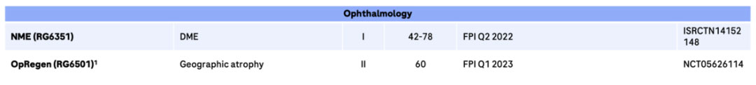 罗氏眼科 2022 年研发管线占所有研发管线比例,明显高于其销售份额占总销售额比例。罗氏 2022 年眼科早研产品管线