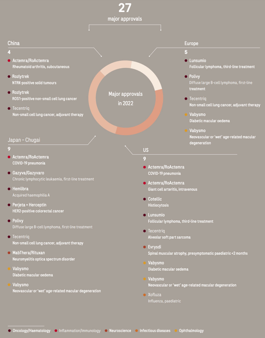 罗氏 2022 年全球获批药品情况