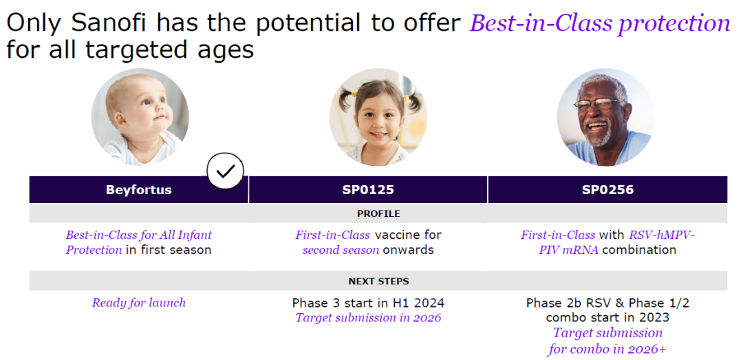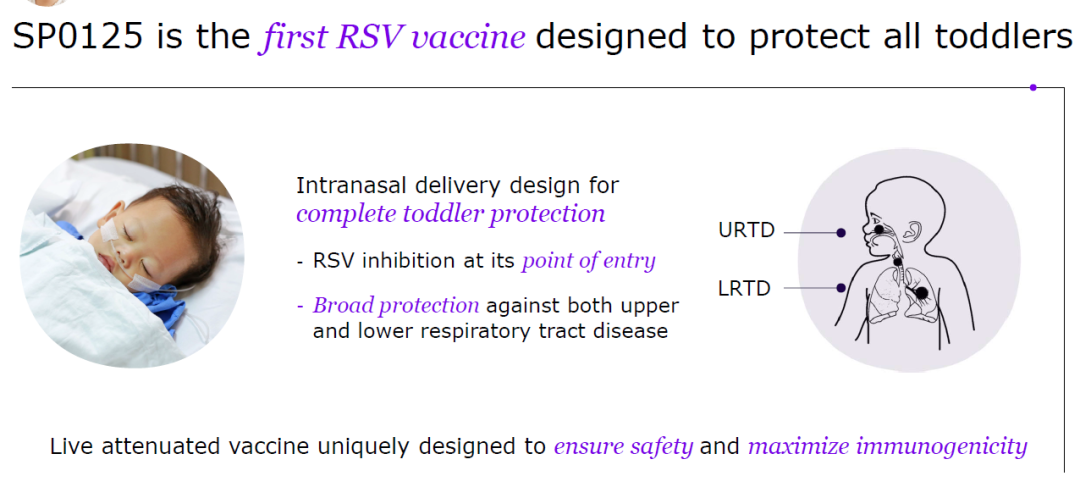 SP0125为一款减毒活疫苗,也是首个被设计可用于保护所有幼儿的的RSV疫苗,预计2024年上半年进入三期临床。