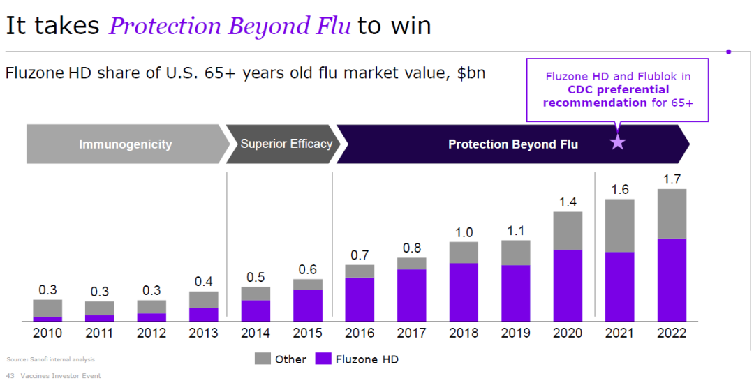 流感方面,赛诺菲Fluzone HD已经统治了老年人市场。