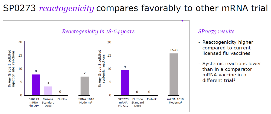 安全性方面尤其是系统严重副作用,显著低于Moderna的mRNA-1010(非头对头)。