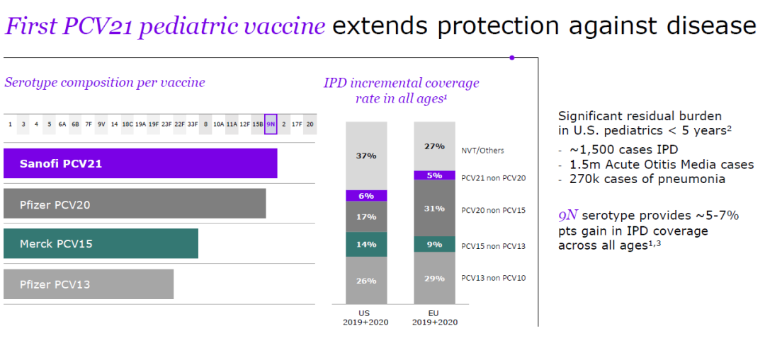 肺炎疫苗方面,赛诺菲在推进的为21价肺炎疫苗,预计2024年上半年启动三期临床。