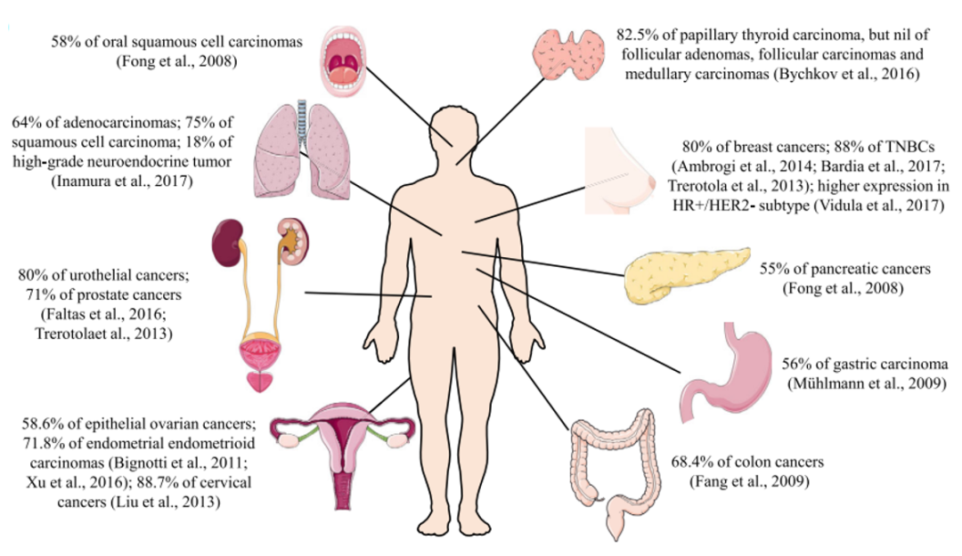图2. Trop 2在肿瘤中的过表达,来源:参考资料1