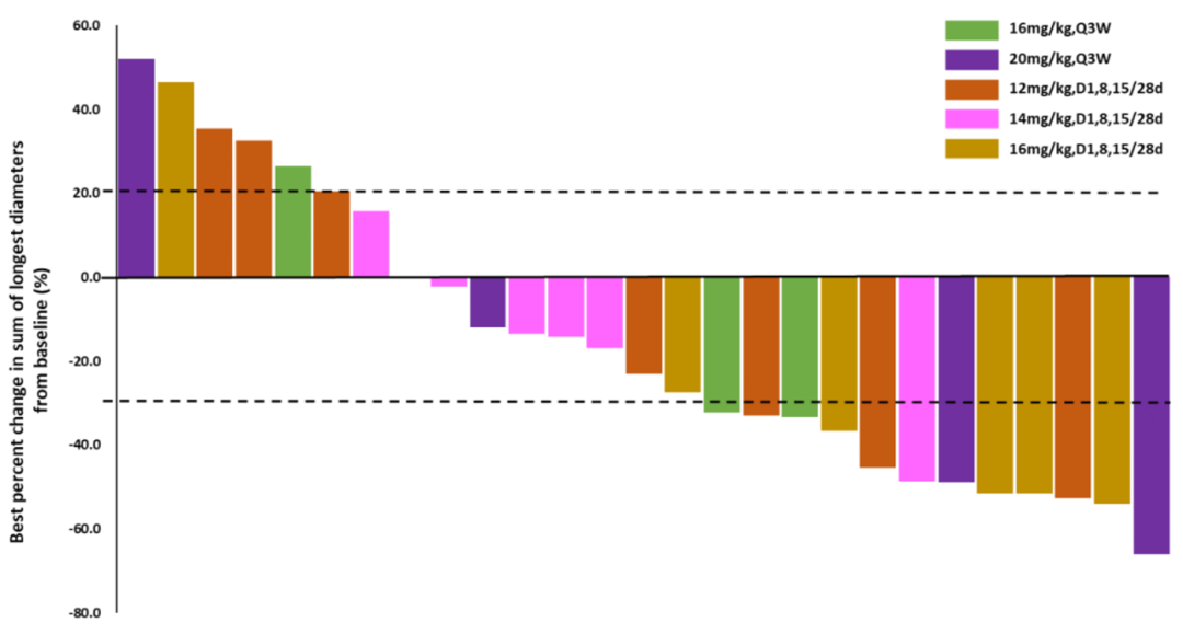 表2. 患者靶病灶较基线的最佳变化百分比,来源:参考资料3