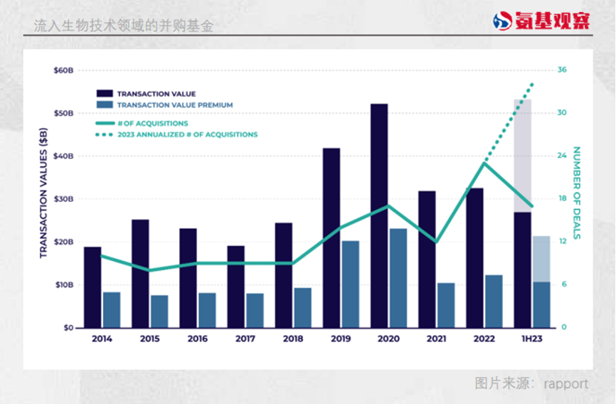 从上半年的交易情况来看,Big Pharma也的确在频频出手。从这个趋势推测,2023年有望成为有记录以来,并购交易总价值、溢价最高的一年。