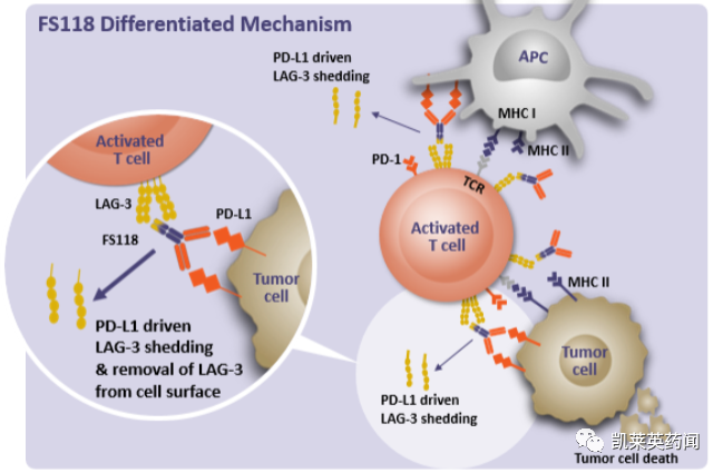 1、FS118:是一种靶向PD-L1和LAG-3的双检查点抑制剂,旨在提供独特的药理学,通过双特异性活性驱动PD-L1依赖性LAG-3脱落和受体下调,为患者提供更持久的反应。
