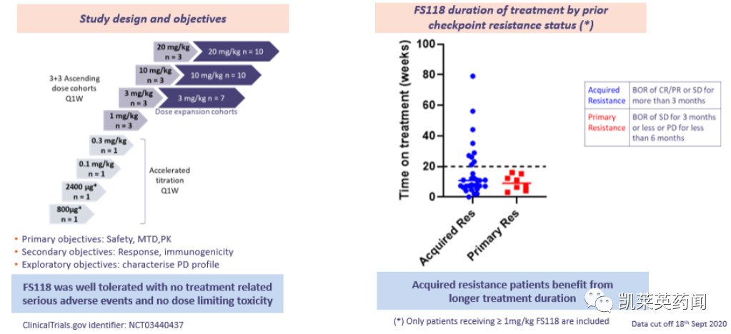 1期临床显示:FS118耐受性良好,没有与治疗相关的严重不良事件,也没有剂量限制性毒性,高达20mg / kg;目前,针对检查点抑制剂复发头颈癌患者的2期概念验证正在进行中。