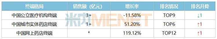 来源:米内网中国公立医疗机构药品终端竞争格局