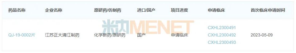 今年5月QJ-19-0002片首次提交临床申请,该产品是江苏正大清江制药首款申报的化药1类新药,标志着公司创新转型迈入新台阶。
