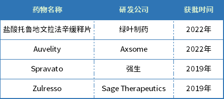 近年全球获批治疗抑郁症新药