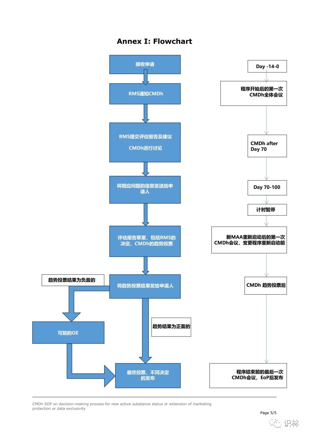 成员国收到相关申请时,应立即通知CMDh,CMDh的全体会议上,相关成员国应给出对相应申请的初步评估及理由,并在会议中进行信息交换和讨论。各成员国会对评估报告草案或最终变更评估报告(FVAR)草案进行趋势投票及最终投票,最终投票结果将在CMDh会议纪要中公布。