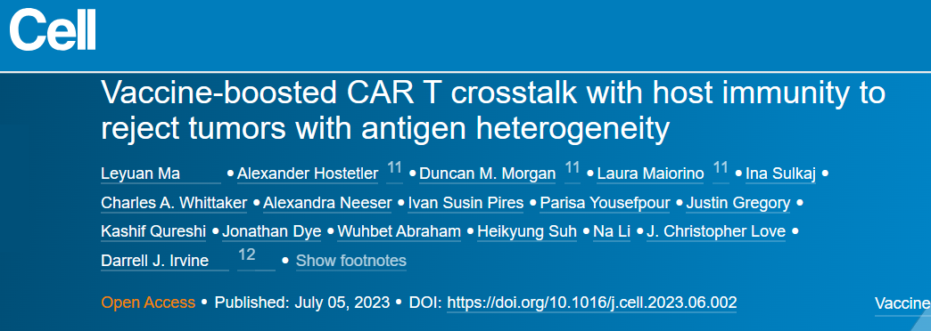“这种疫苗似乎驱动了一个叫抗原扩散的过程。在这个过程中,自身免疫系统与工程CAR-T细胞合作杀伤并不是所有细胞都表达CAR-T细胞靶抗原的肿瘤。”领导该研究的Darrell Irvine教授解释道。