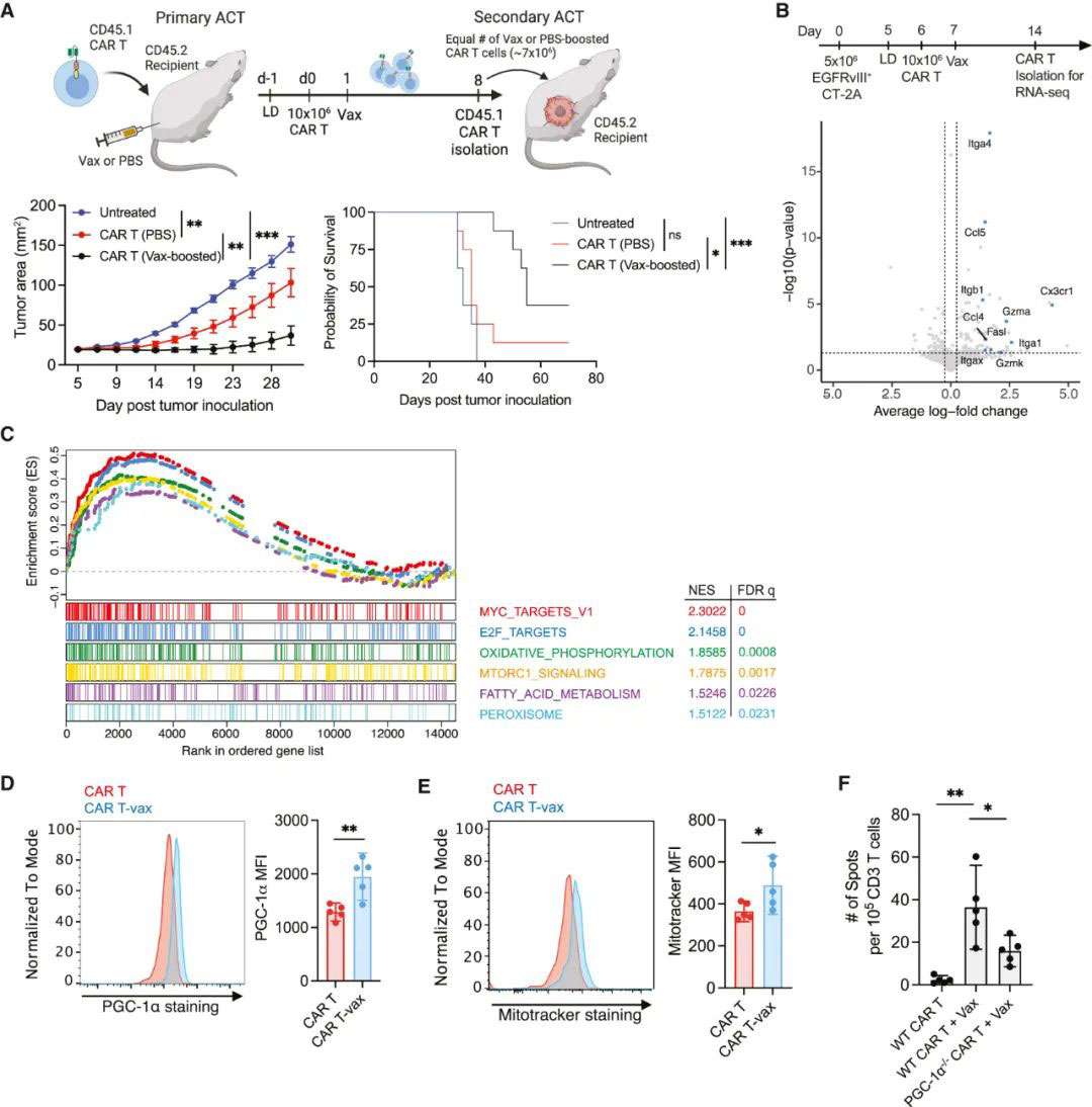 疫苗增强剂诱导CAR-T细胞功能增强,包括代谢重编程(来源:Cell)
