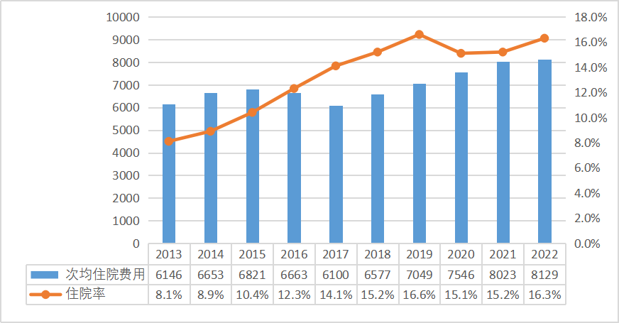 2013-2022年居民医保次均住院费用