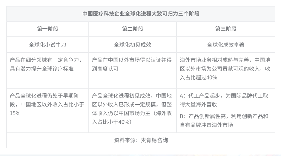 表1.国内医疗科技企业出海三阶段 来源:麦肯锡咨询