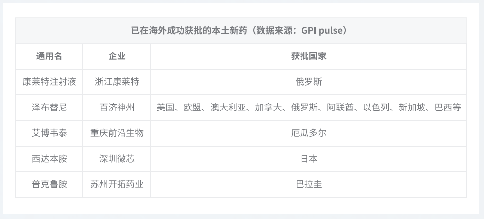 表2.出海成功的代表性本土新药 来源:GPIpulse
