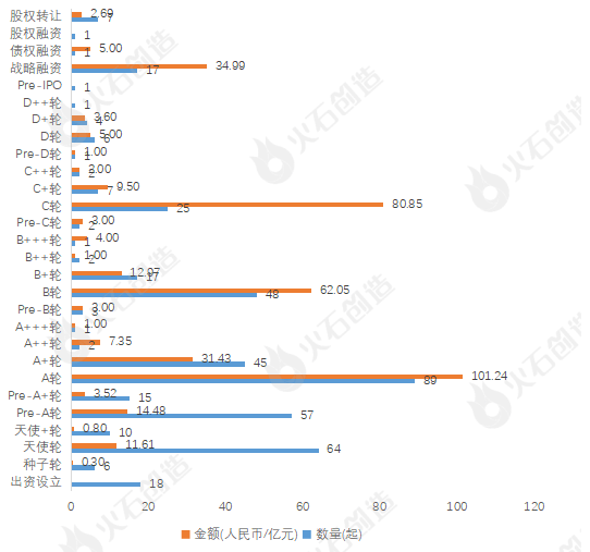 图 2:上半年各轮次融资数量及金额 来源:火石创造产业数据中心