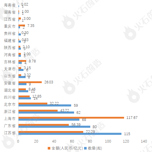 图 3:上半年各地区融资数量及金额 来源:火石创造产业数据中心