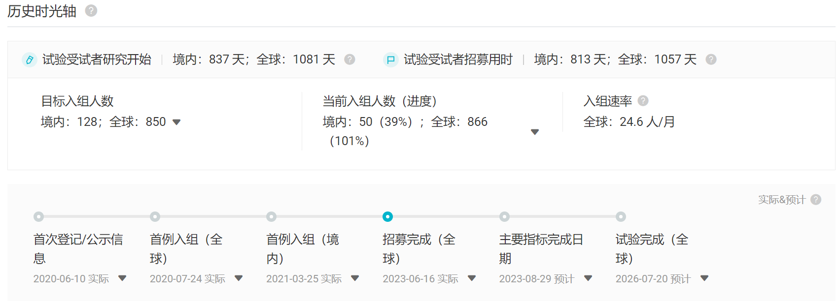 DB06 研究起始于 2020 年 6 月,纳入中国境内 50 例、全球 866 例患者,主要指标预计在 2023 年 8 月完成。